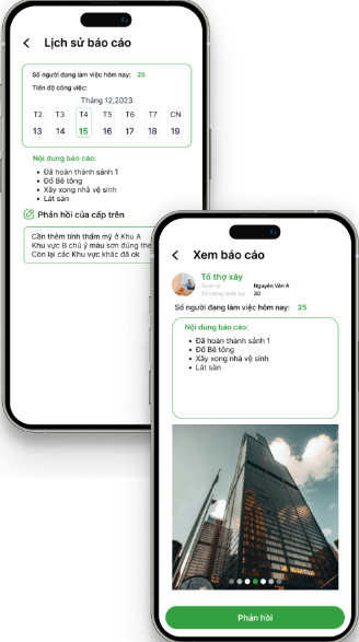 Nhà thầu có thể kiểm tra, xem lịch sử báo cáo và phản hồi với tiến độ làm việc của các tổ đội bên dướiTuyển dụng lao động địa phương