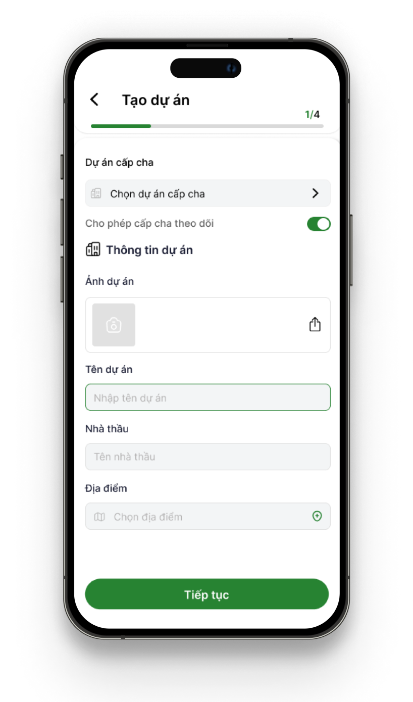 Với các bước đơn giản, các đơn vị, nhà thầu, có thể tạo dự án để quản lý dễ dàng.
